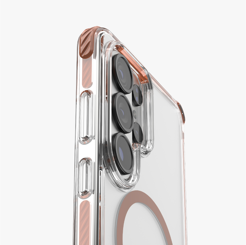 The TPU bumper is engineered with reinforced shock-diffusion ribs, enabling rapid rebound upon collision and dispersing external forces evenly across the frame. Combined with high-strength polycarbonate, the structure forms a dual-layer protection matrix that effectively resists deformation, cracking, and pressure concentration. Elevated corner buffers further enhance anti-drop performance, providing reliable defense against daily impacts and accidental drops.