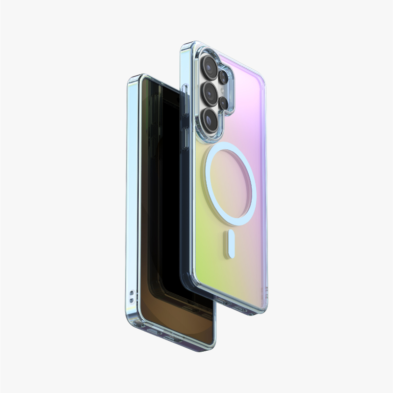 Engineered with state-of-the-art co-molding technology, the PULOKA Macaron Series blends translucent TPU elasticity with a soft-touch iridescent gradient finish. The multi-tone macaron color effect is achieved through precision spraying and vacuum plating, producing a smooth, pastel-like luster that shifts elegantly with ambient light. Beyond its unique aesthetic, the material exhibits high tensile resilience and excellent deformation recovery, maintaining structural integrity even after repeated stress. Reinforced edges and elevated bezels form a protective buffer zone against accidental drops, while the anti-fingerprint coating preserves a clean, glossy appearance. The result is a case that seamlessly integrates artistic color expression with professional-grade protection.