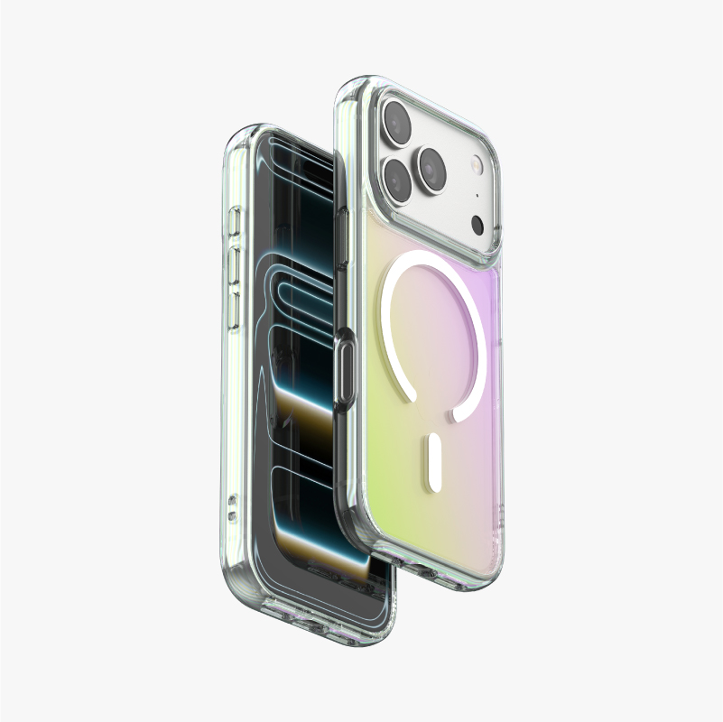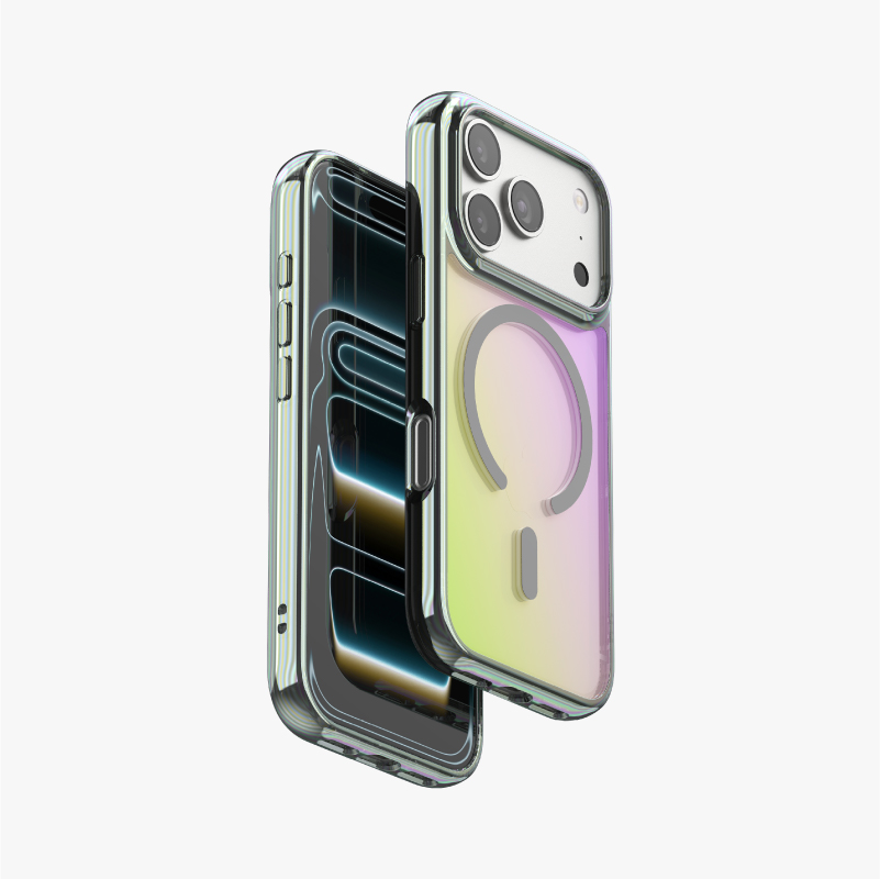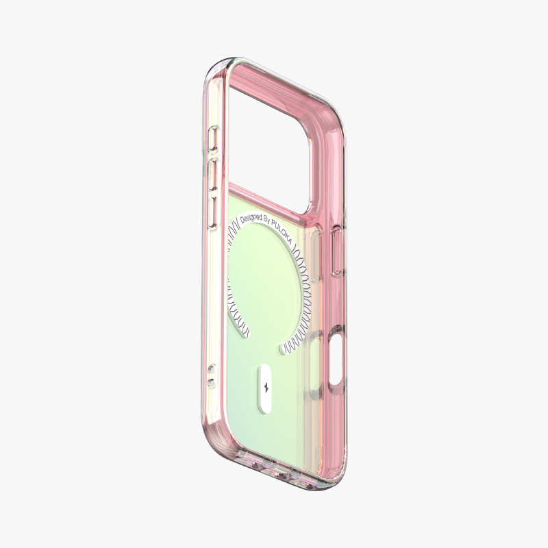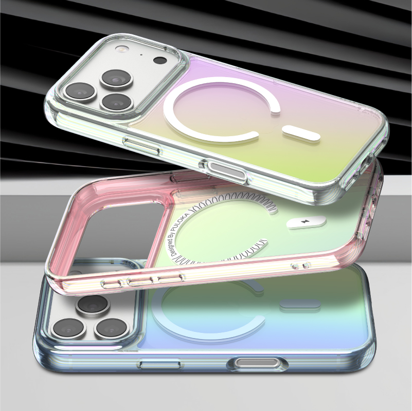 Crafted through advanced precision injection molding, the PULOKA Iridescent Series features a dual-layer composite structure. The inner layer is made of high-transparency polycarbonate, ensuring crystal-clear optical clarity and long-lasting resistance to yellowing. The outer surface is treated with a nano-iridescent coating that refracts light into shifting color spectrums, creating a dynamic rainbow-like effect under different viewing angles. This coating not only enhances visual appeal but also provides an additional scratch-resistant barrier. Combined with flexible TPU edges, the case delivers both a striking aesthetic and reinforced impact absorption, ensuring everyday durability with premium style.