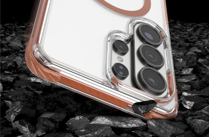 The TPU bumper is engineered with reinforced shock-diffusion ribs, enabling rapid rebound upon collision and dispersing external forces evenly across the frame. Combined with high-strength polycarbonate, the structure forms a dual-layer protection matrix that effectively resists deformation, cracking, and pressure concentration. Elevated corner buffers further enhance anti-drop performance, providing reliable defense against daily impacts and accidental drops.