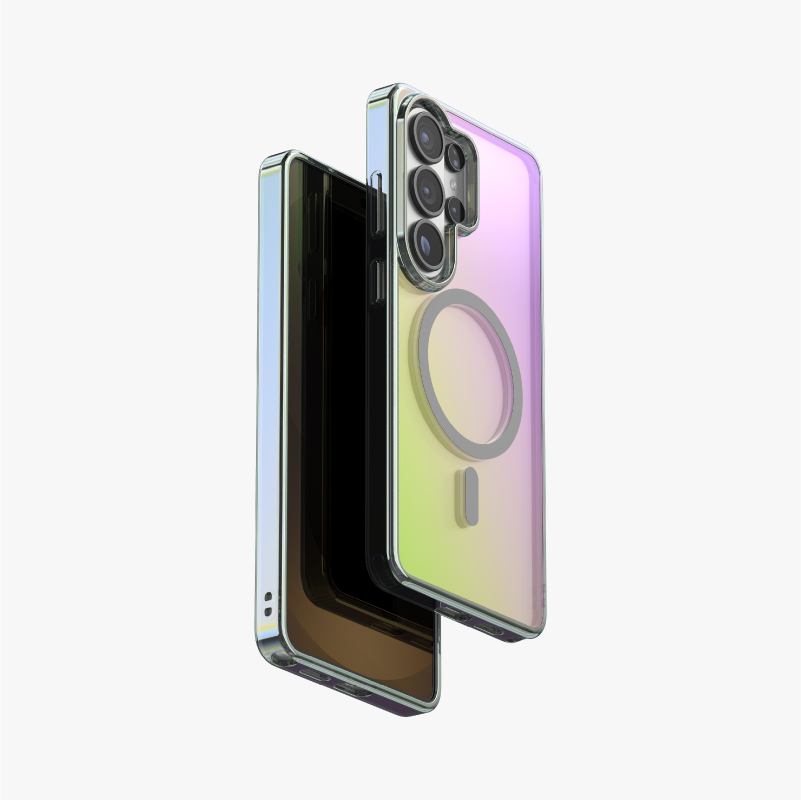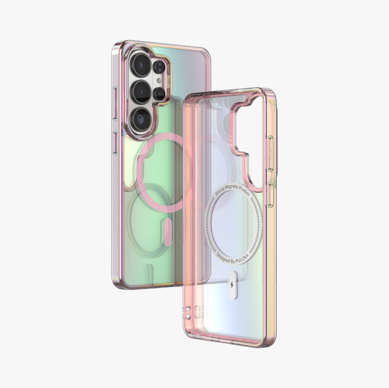 Engineered with state-of-the-art co-molding technology, the PULOKA Macaron Series blends translucent TPU elasticity with a soft-touch iridescent gradient finish. The multi-tone macaron color effect is achieved through precision spraying and vacuum plating, producing a smooth, pastel-like luster that shifts elegantly with ambient light. Beyond its unique aesthetic, the material exhibits high tensile resilience and excellent deformation recovery, maintaining structural integrity even after repeated stress. Reinforced edges and elevated bezels form a protective buffer zone against accidental drops, while the anti-fingerprint coating preserves a clean, glossy appearance. The result is a case that seamlessly integrates artistic color expression with professional-grade protection.